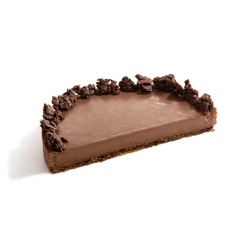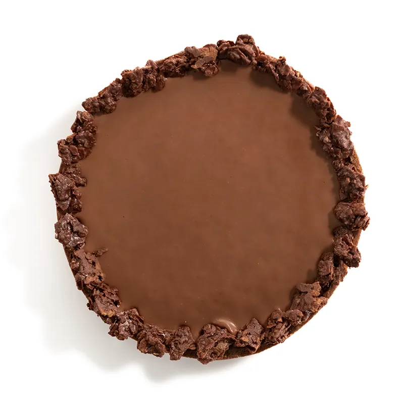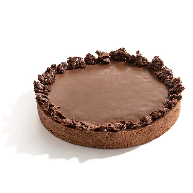 مناسب برای 5 تا 6 نفر- قطر حدودأ 18 سانتی متر. نان تارت ترد شکلاتی پر شده با گنش شکلات که در میان آن کارامل مایع قرار دارد و با چیپس شکلاتی تهیه شده از کورن فلکس و پودر طلای خوراکی تزیین میشود.