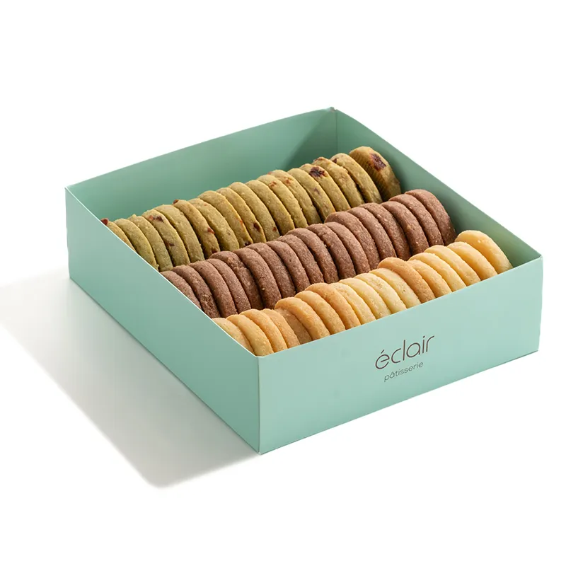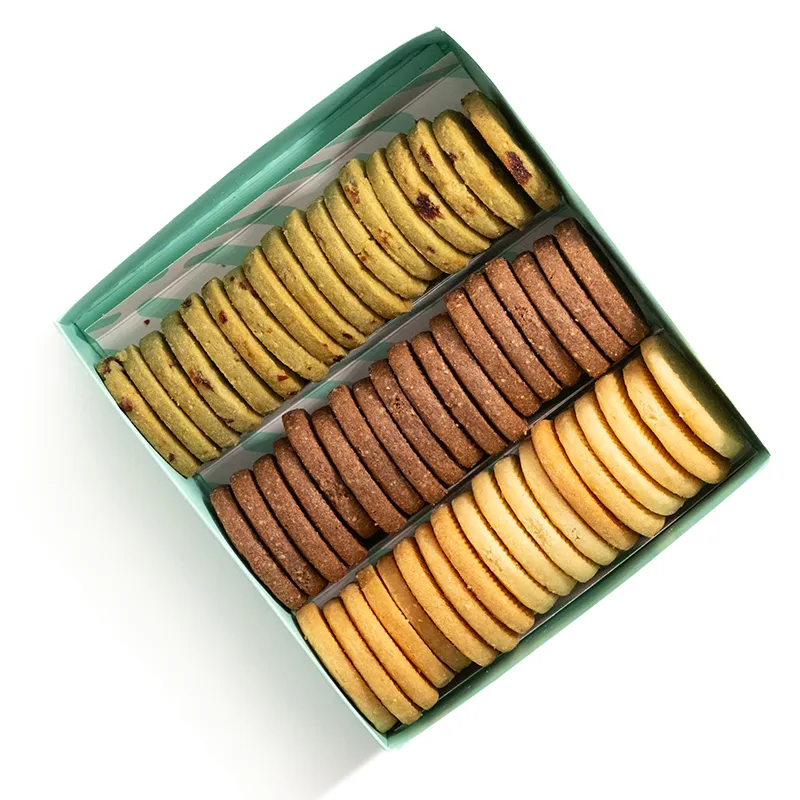 54 عدد کوکی، شامل سه طعم ماچا و کرنبری، وانیلی و شکلاتی